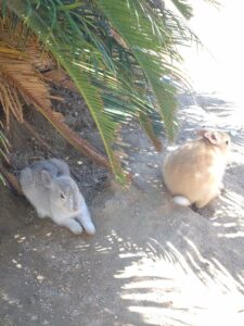 島内は車が乗り入れ禁止なこともあり、ウサギがあちこちの日陰でエサを待っています。